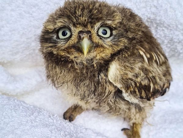 If it's starving it's breastbone will feel very prominent and its tummy (between its legs) will be empty. Damp or wet owlets will dry out.