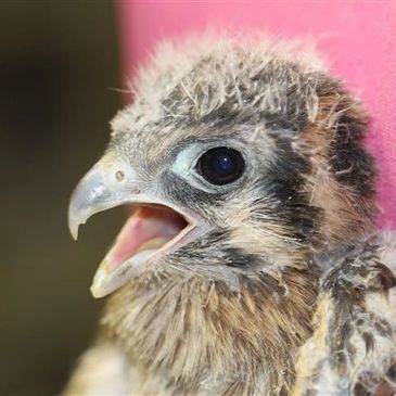 If the bird of prey chick isn't feathered and cannot be returned to the nest then you have little choice but to rescue it. Any bird of prey chick takes specialist care as their diet is varied and roughage is crucial for a healthy chick so they cannot be fed properly on supermarket chicken!